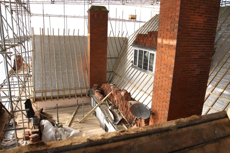 Working closely with the LABC we achieved the thermal standards, externally. We stripped the roof, added insulation board above the sarking boards and replaced the tiling using a system of battens and counter battens.
